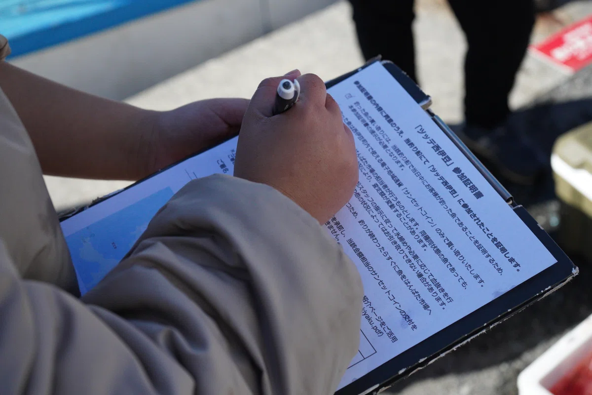 品質保持のために適切な処置を施した魚であることを証明するもので、下船後、船長が発行してくれます。