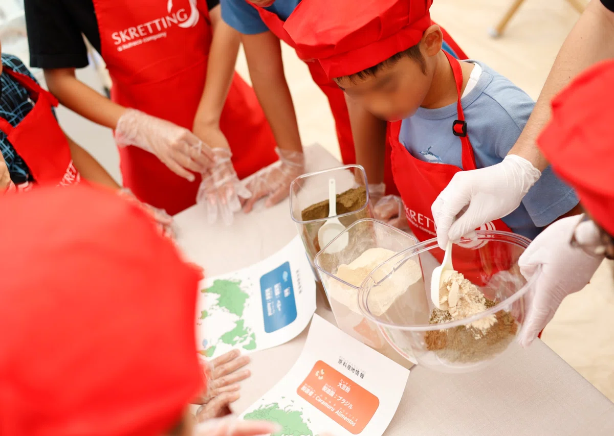 実際のエサでも使用される、ブラジル産の大豆粉やペルー産の魚粉でのエサづくり、マダイへのエサやりも体験しました。魚を食べ続けるために、ルールを守った養殖で育った魚を選ぶ大切さを感じていただけたと思います。