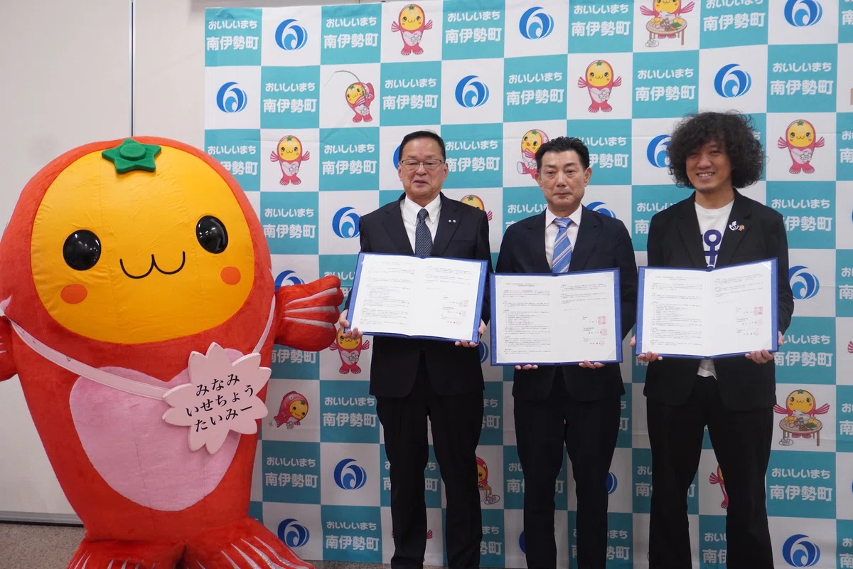 2025年10月3日。南伊勢町、三重外湾漁業協同組合(以下外湾漁協)、そして一般社団法人フィッシャーマン・ジャパン(FJ)の3者は、活気ある水産業の実現に向けて連携協定を締結しました。