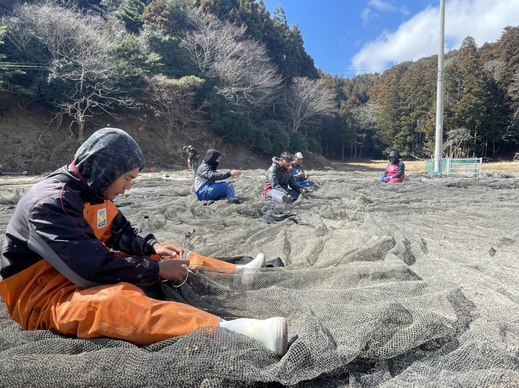 具体的には、網を投入・展開して魚群を囲い、タイミングを合わせてロープを引きながら網を締めていく作業。