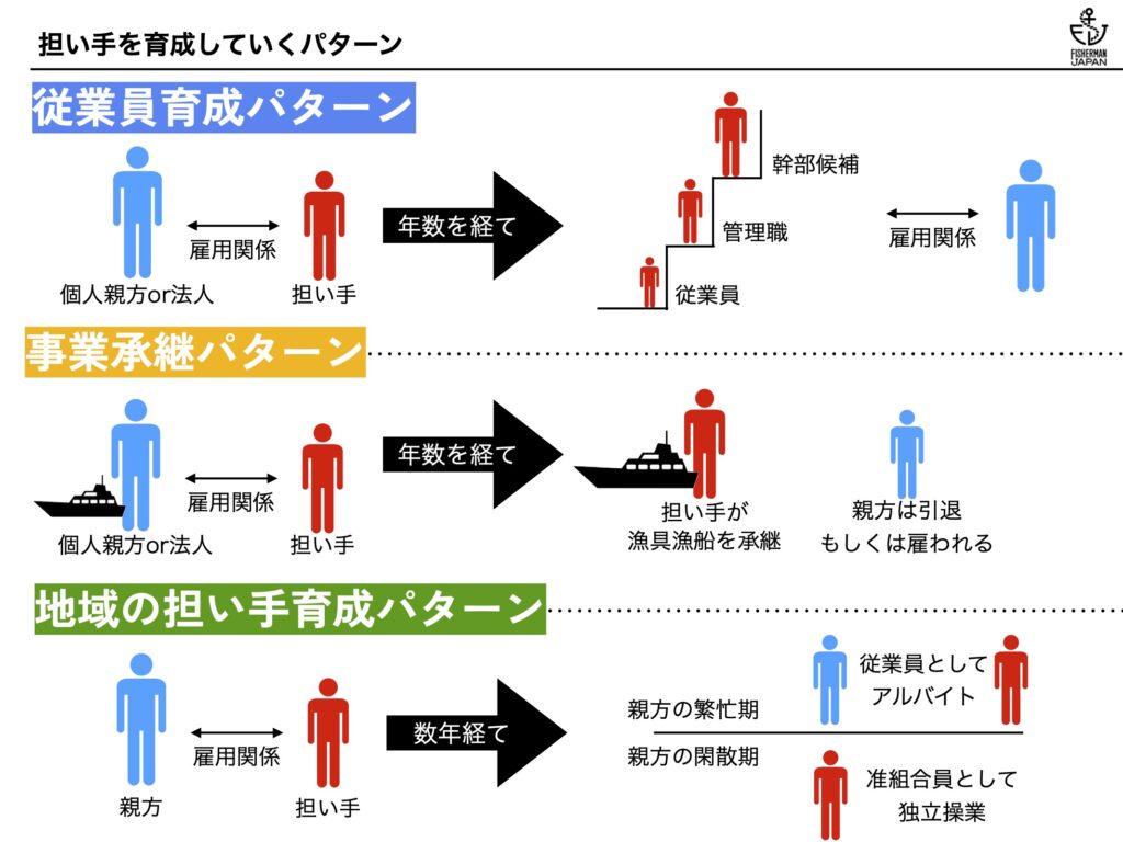 ・地域の戦略設計:自治体・漁協と連携し、その地域に合った担い手確保の戦略を描き、行政事業として実装する