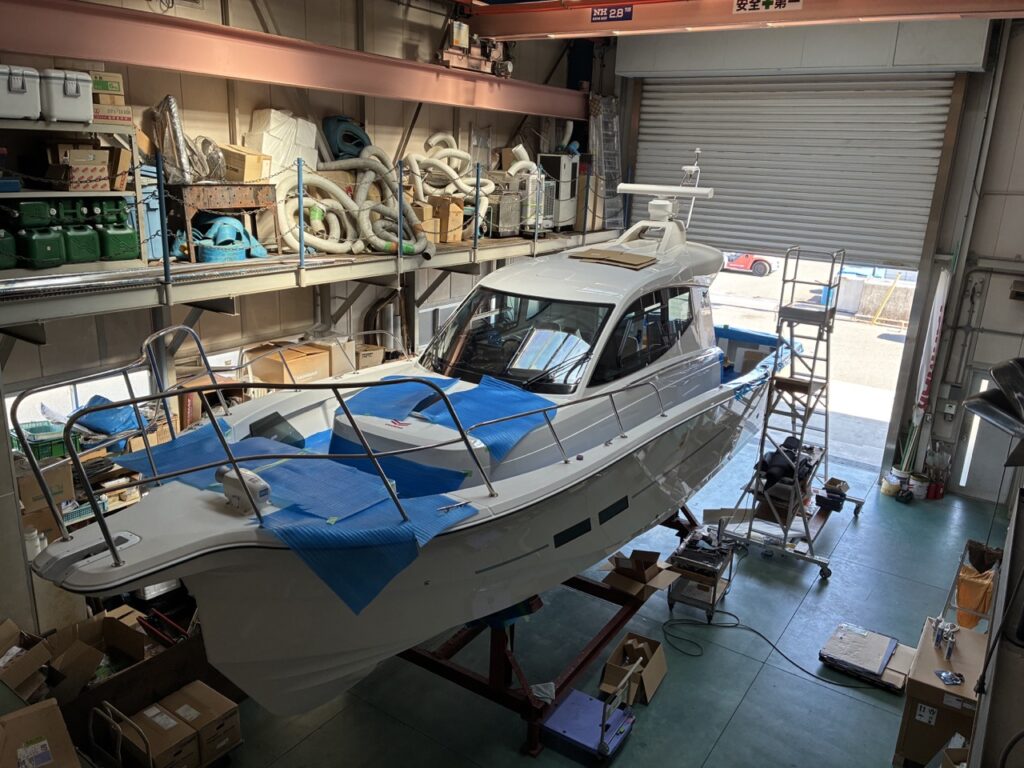 エンジンルームに入り込む日もあれば、ドックで揚艇された船体を整備する日もあります。