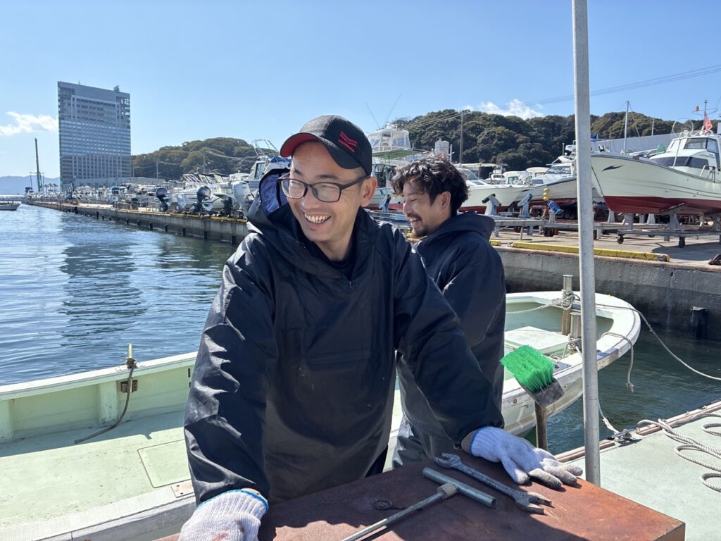 工具を渡しながら冗談が飛び、作業後には釣りの話で盛り上がる。そんな現場で、今日もチームで船を支えています。