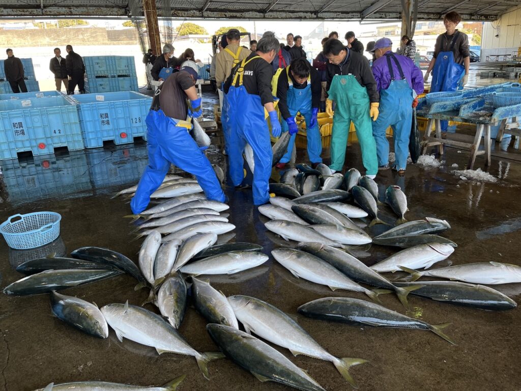 ブリ、イサキ、タイ、サバ、アジ。季節ごとに顔ぶれは変わり、時にはマグロやカジキといった大物が入ることもあります。